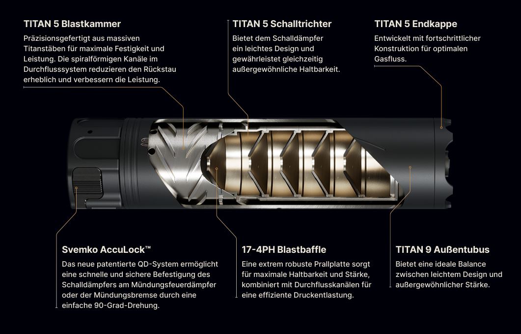 Der neue Svemko Rogue Pro Schalldämpfer verfügt über fortschrittliche Flow-Through-Technologie und bietet eine extreme Leistung von 24 - 26 dBc. Das System wird mit zwei Montagemöglichkeiten geliefert: einem Mündungsfeuerdämpfer und einer Mündungsbremse. Unser neues patentiertes AccuLock™-System ermöglicht eine 90-Grad-Drehung zur Montage am Mündungsfeuerdämpfer/ Mündungsbremse.